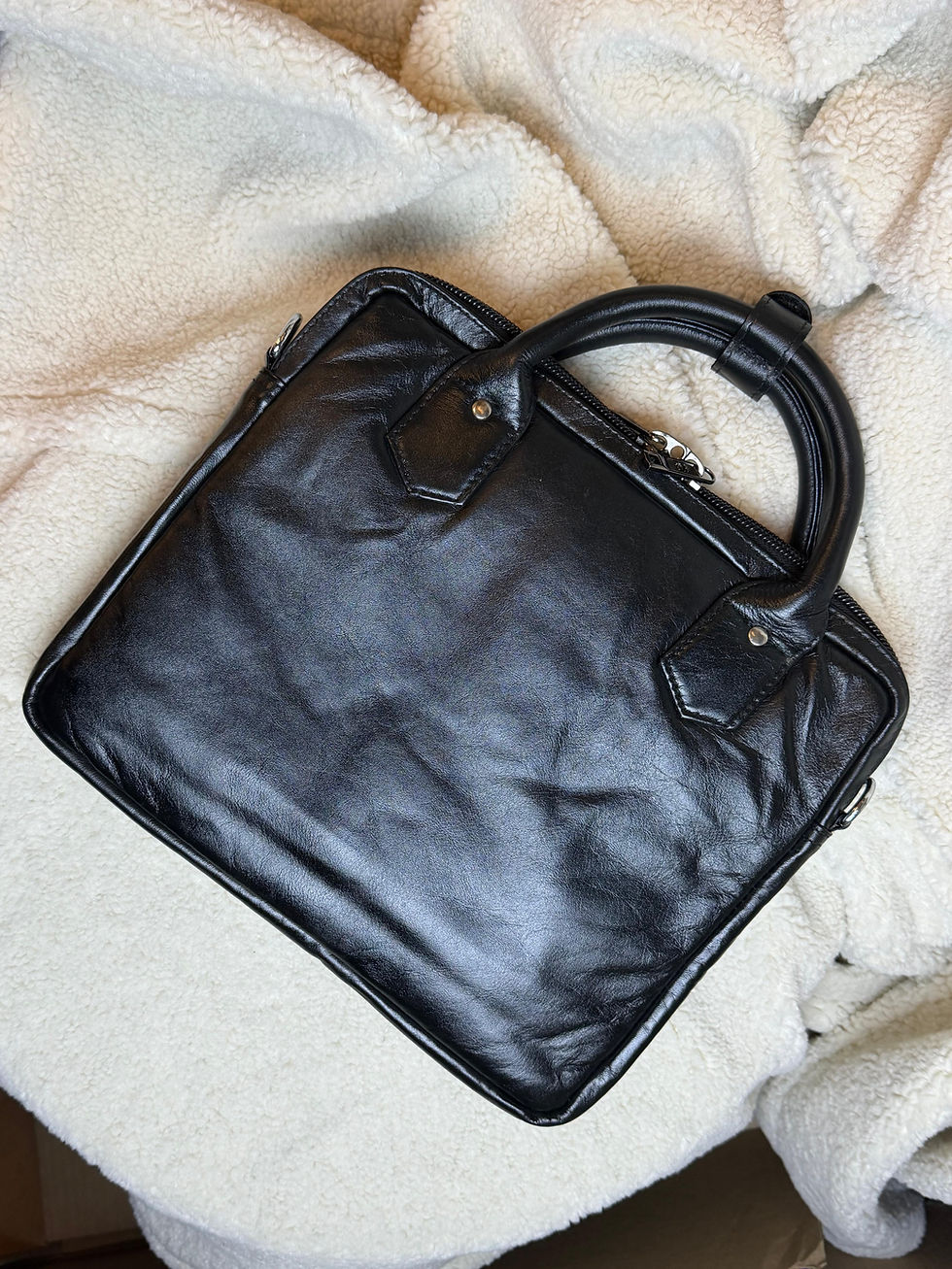 Premium Black Genuine Leather Medium Messenger Bag Handheld Carry Zippered