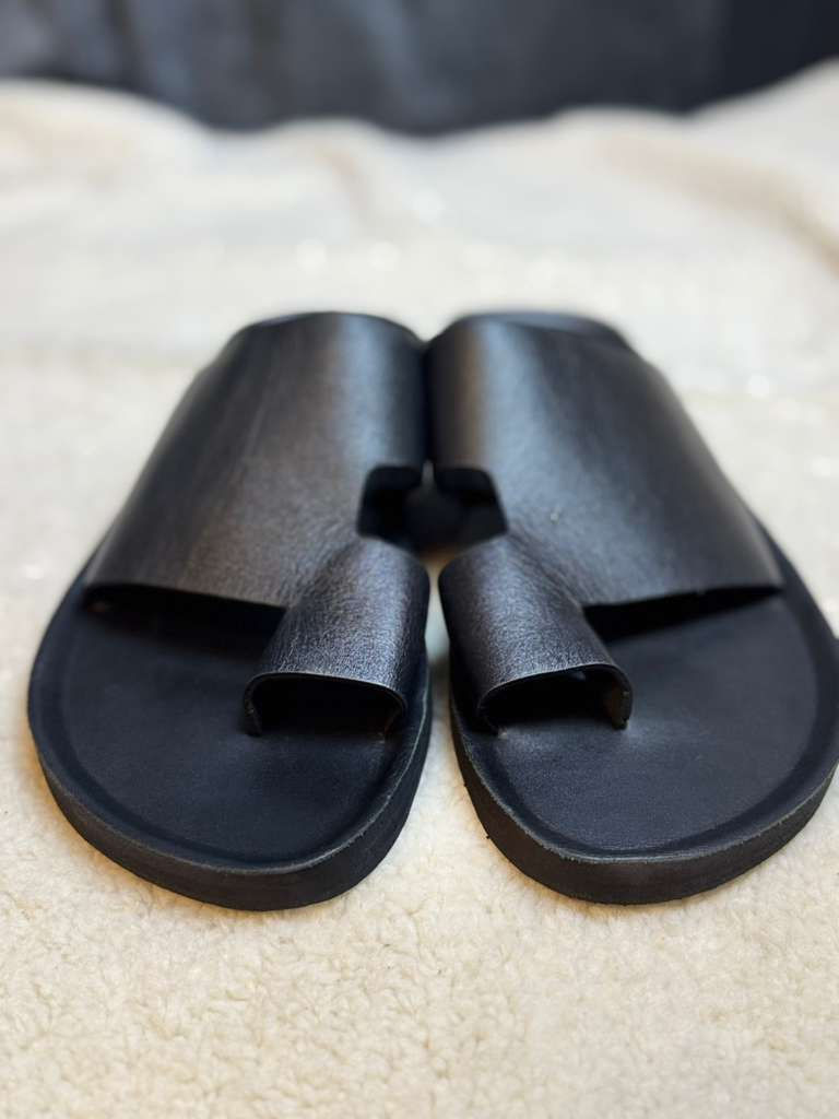 Elevate your everyday comfort with these black genuine leather slide sandals featuring a clean, minimal design. Crafted with a smooth leather upper and an open-toe silhouette, these sandals offer an easy slip-on style perfect for daily wear, travel, or casual outings. The contoured footbed provides comfortable support, while the textured outsole ensures reliable traction.