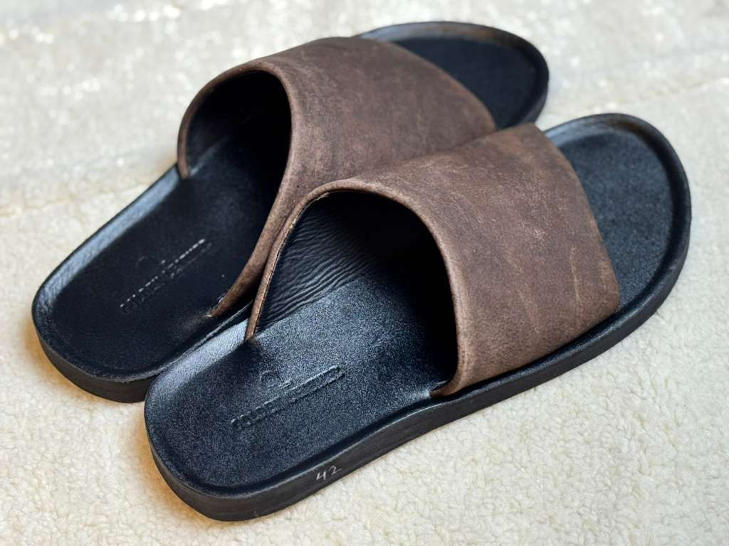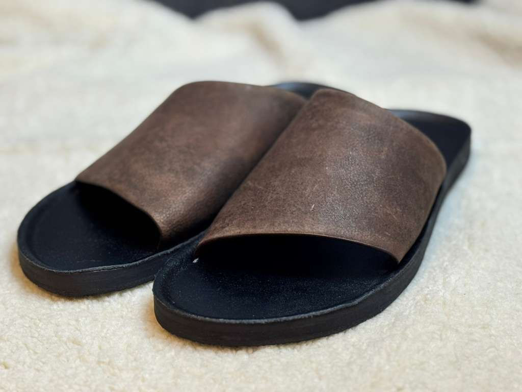 Men’s Brown Genuine Leather Slide Sandals Casual Comfort Summer Slip-On US 8.5–9